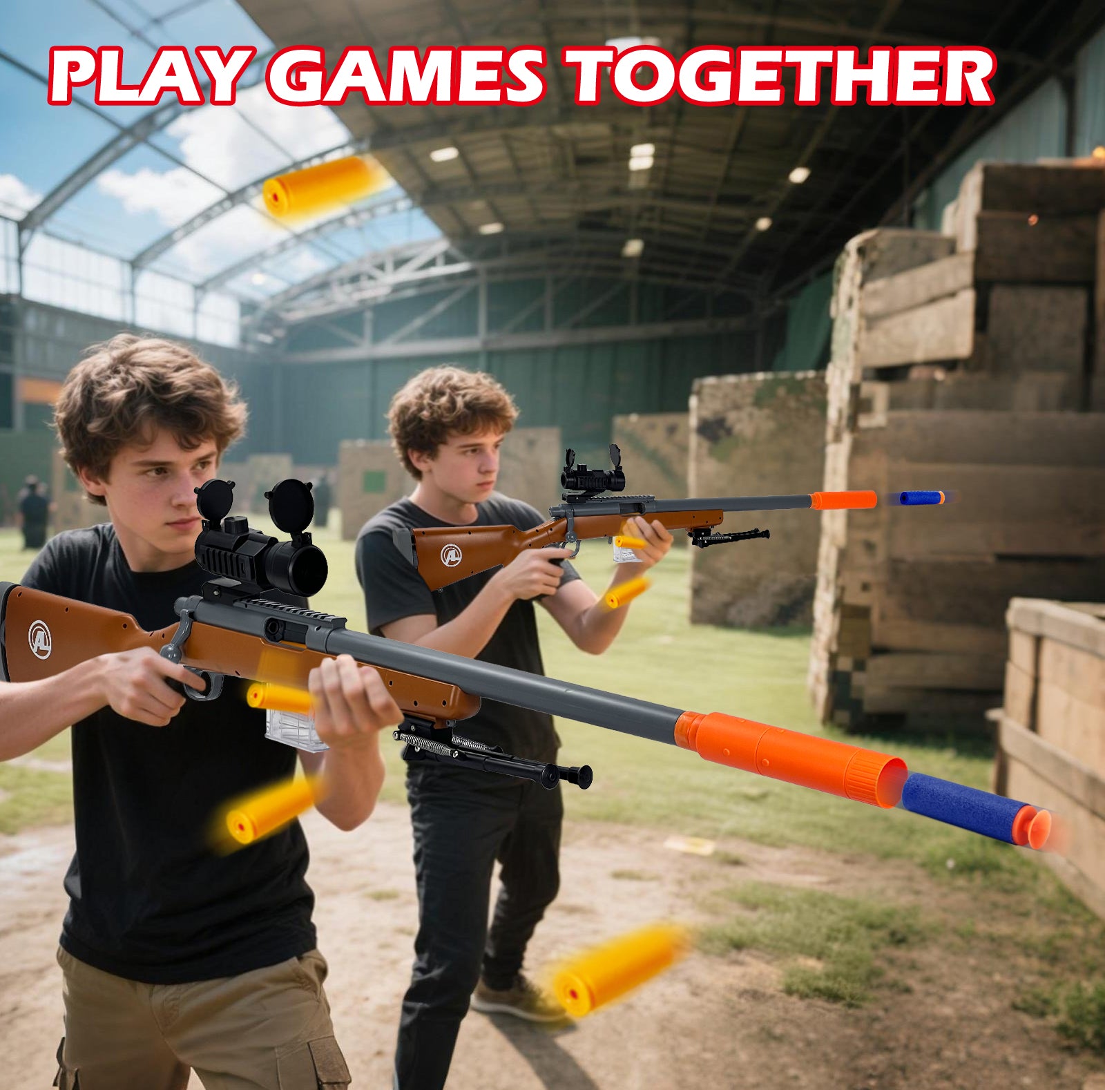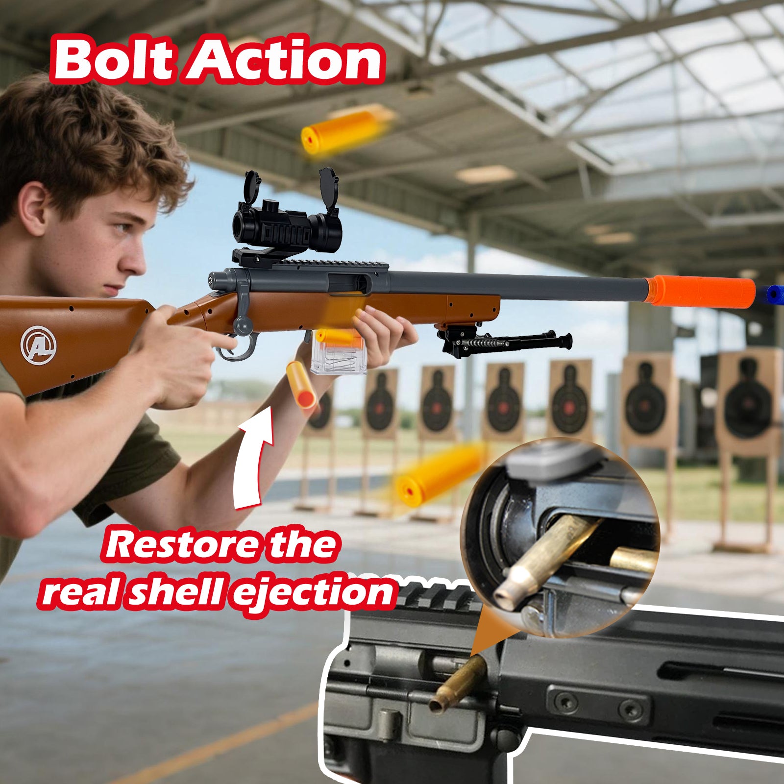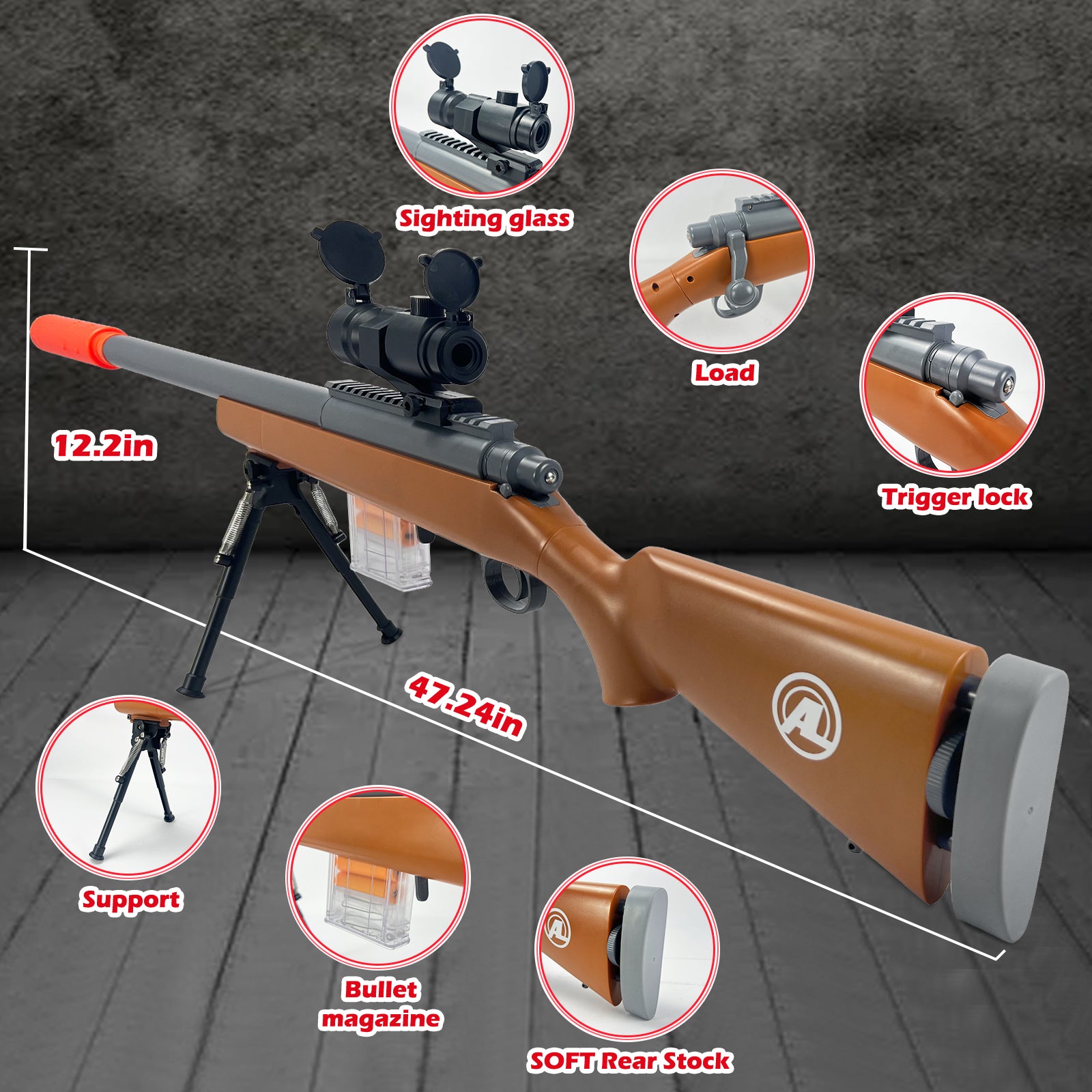 - M24 Toy Gun: Includes a toy gun, 21 shells, 40 softballs ,bipod, and a sniper scope. This is a softball gun. Each cartridge can carry one softball. This toy gun is manual. It can be loaded with up to 4 rounds, and you will need to re-add softballs after 4 consecutive rounds.