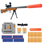 - M24 Toy Gun: Includes a toy gun, 21 shells, 40 softballs, a loader, bipod, and a sniper scope. This is a softball gun. Each cartridge can carry one softball. This toy gun is manual. It can be loaded with up to 4 rounds, and you will need to re-add softballs after 4 consecutive rounds.