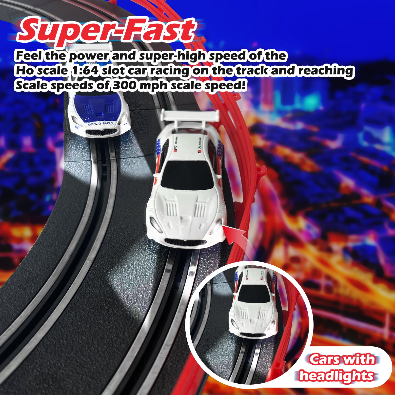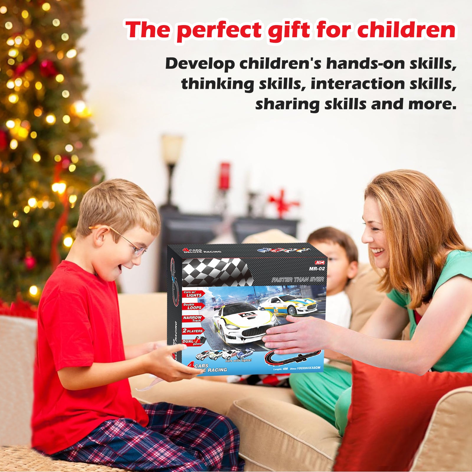 - Compétition familiale : notre piste de course pour garçons âgés de 4 à 12 ans est un jouet de voiture pour deux coureurs, il est livré avec quatre voitures à sous, deux télécommandes durables (testées plus de 10 000 fois). Ce n'est pas seulement un jouet d'amitié, mais aussi un jouet familial, vous pouvez rivaliser avec votre enfant, une excellente alternative aux jeux vidéo.