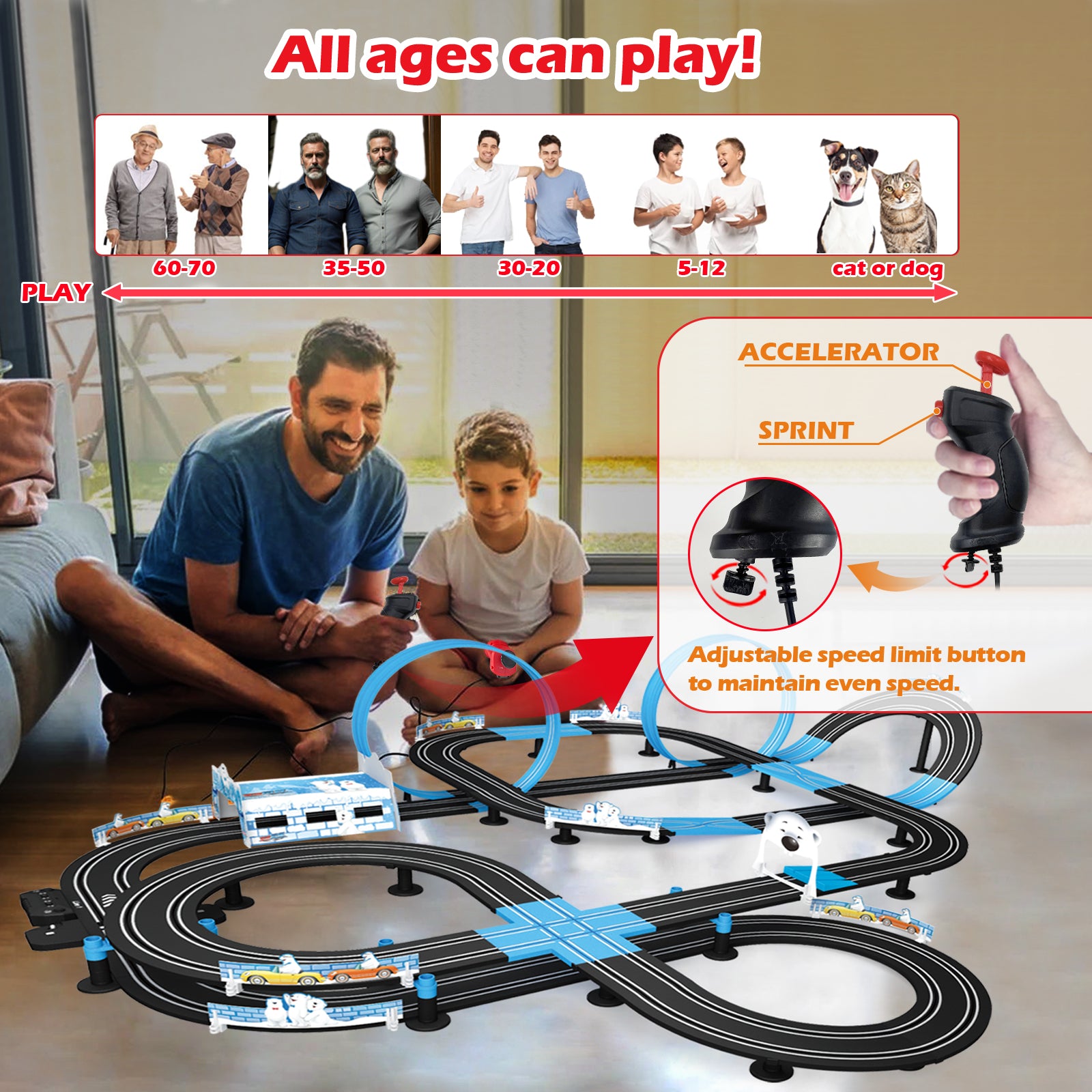 - Piste améliorée extra longue et étendue : découvrez la piste de course extra-large à l'échelle 1:64, où les voitures courent autour de la piste à une vitesse ultra-élevée d'environ 370 mph ! Par rapport à des produits similaires, il est plus rapide et la piste est plus longue (13,5 M), vous offrant une expérience de jeu plus excitante.