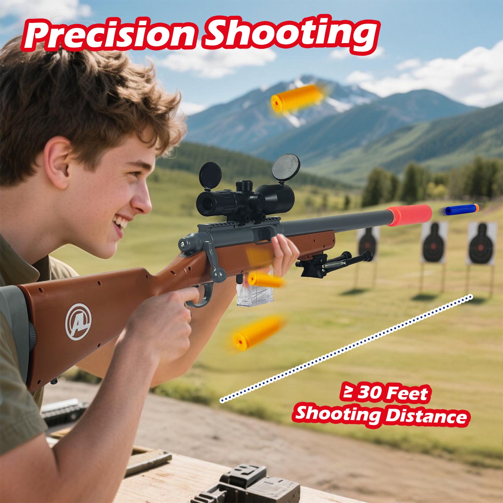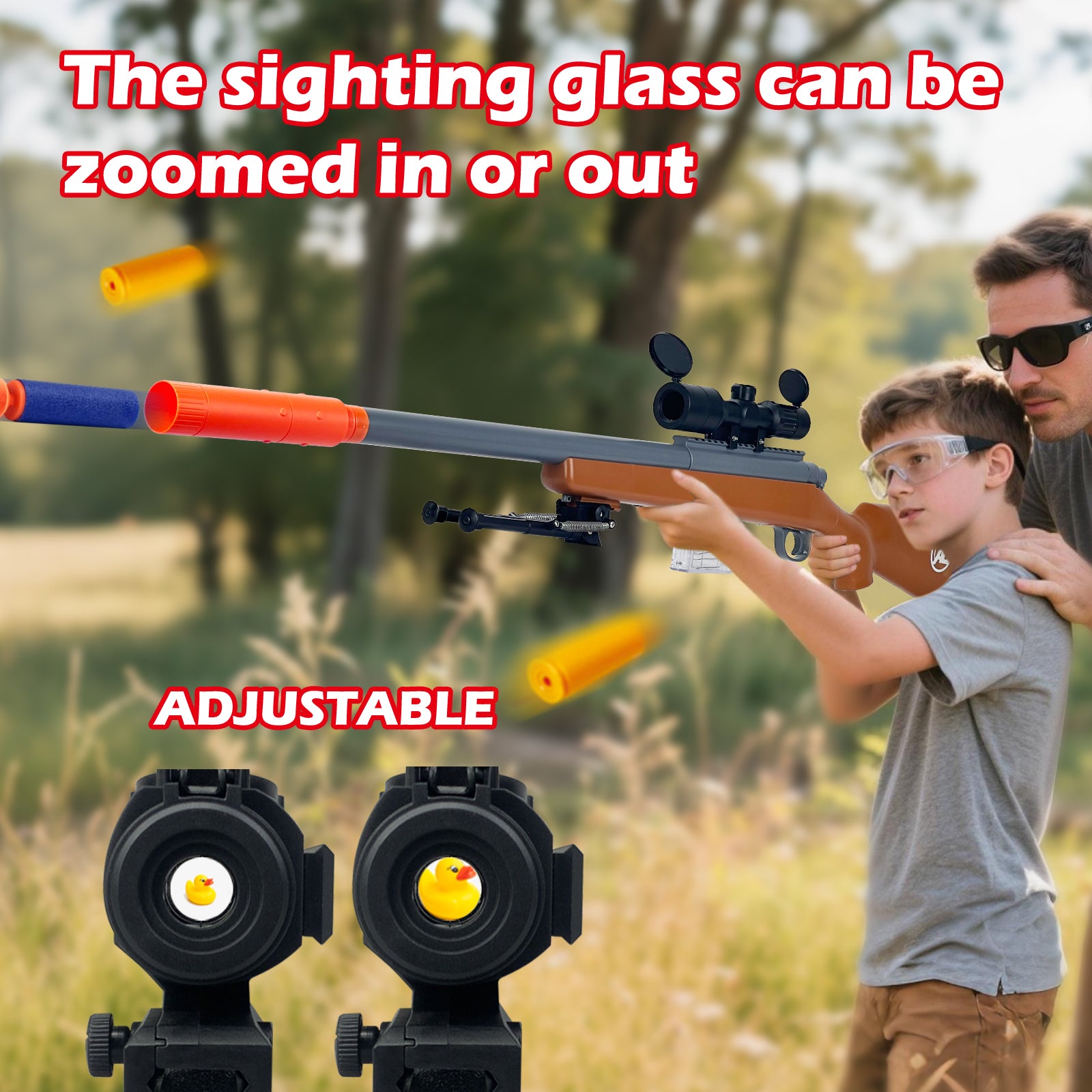 - M24 Toy Gun: Includes a toy gun, 21 shells, 40 softballs, a loader, bipod, and a sniper scope. This is a softball gun. Each cartridge can carry one softball. This toy gun is manual. It can be loaded with up to 4 rounds, and you will need to re-add softballs after 4 consecutive rounds.