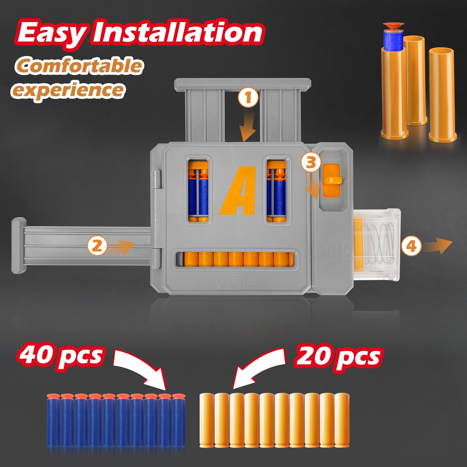 - PACKAGE INCLUDES 40 OFFICIAL AGM FOAM DARTS AND 2 MAGAZINES: Our blaster set offers 40 darts to fully load the 4-dart cartridge, plus extra darts for reloading during play.