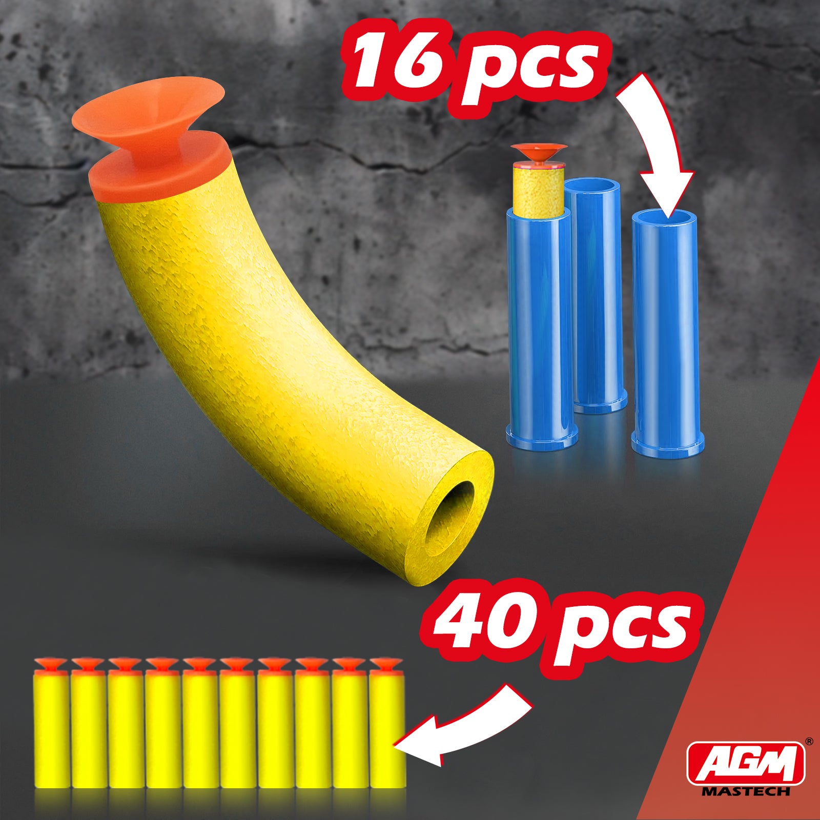 - Livré avec 16 cartouches, 40 balles molles, il contient 4 cartouches de munitions dans le fond et 1 cartouche dans la chambre pour 5 cartouches de munitions.