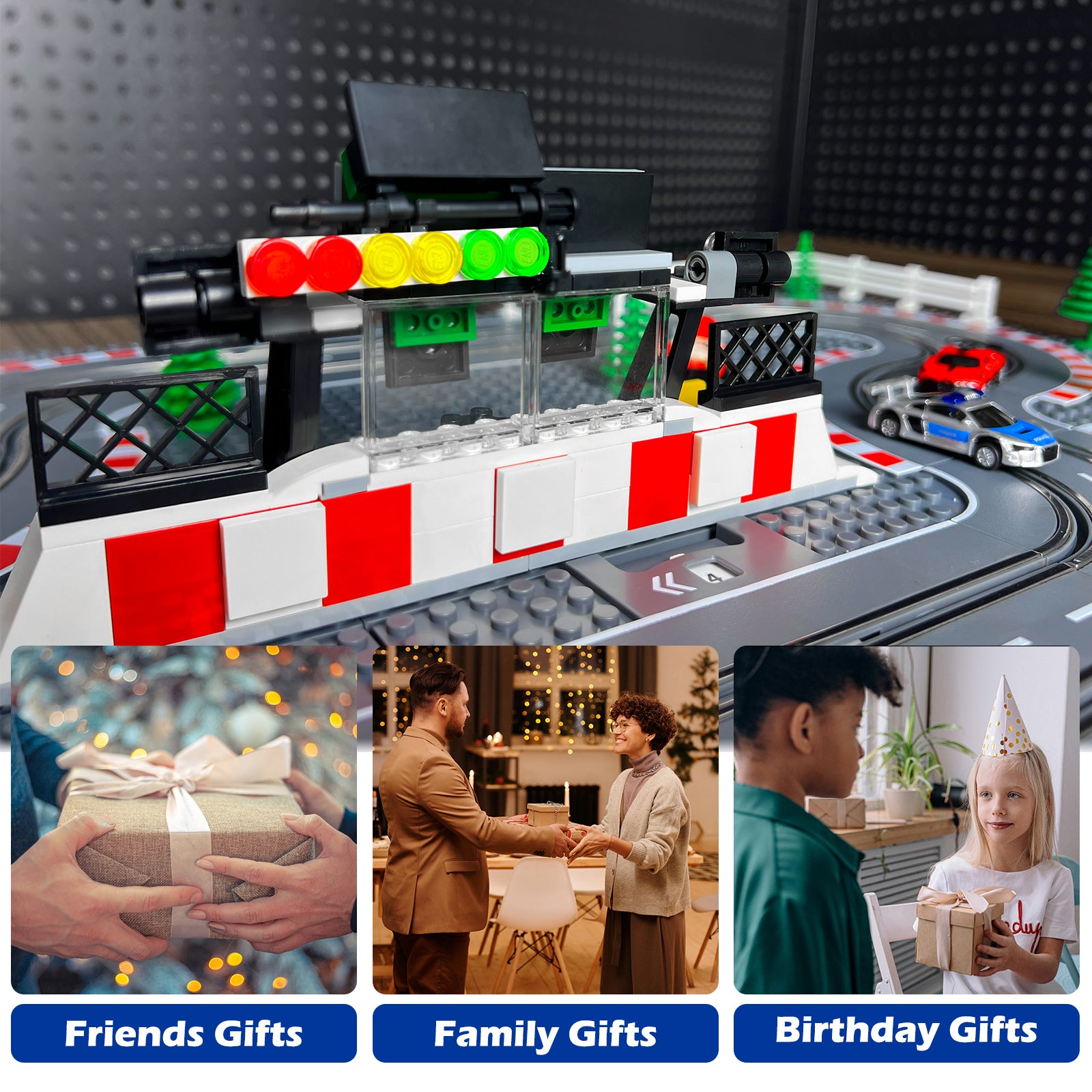 - Innovative Design. Slot car racing conbinates with building blocks. The racing tracks and cars are scaled down to 1:87. you can build a racing venue with family.