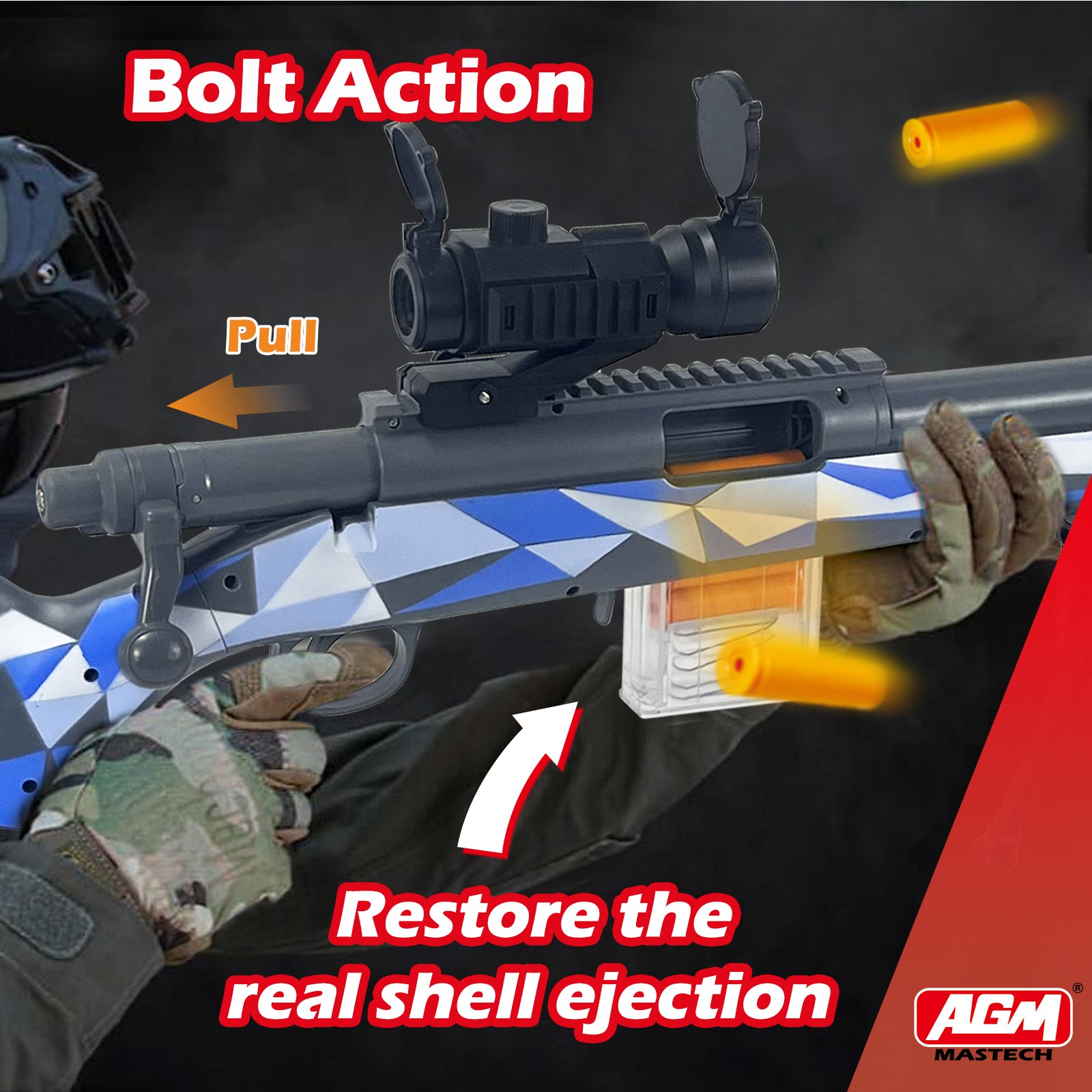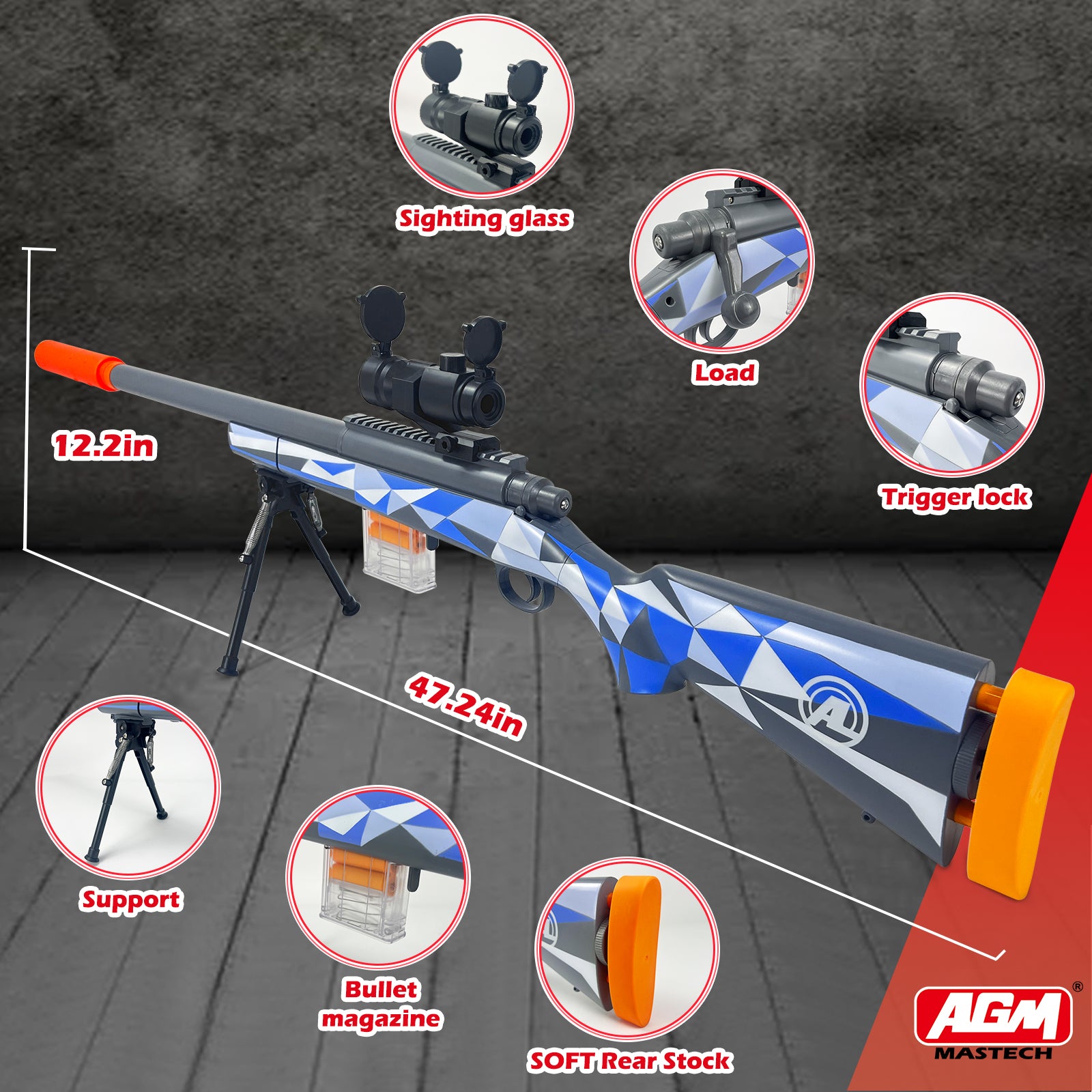 - PACKAGE INCLUDES 40 OFFICIAL AGM FOAM DARTS AND 2 MAGAZINES: Our blaster set offers 40 darts to fully load the 4-dart cartridge, plus extra darts for reloading during play.