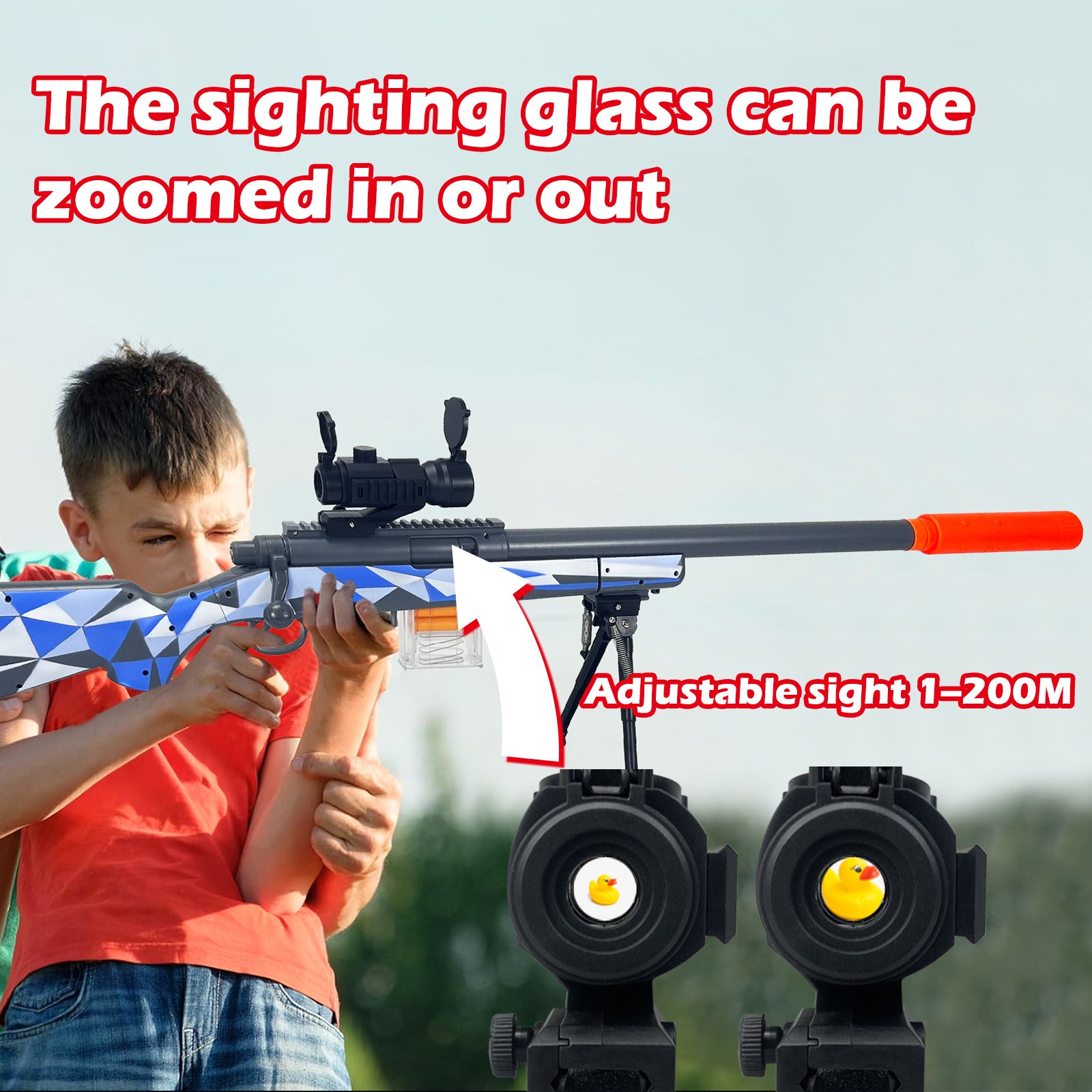 - M24 Toy Gun: Includes a toy gun, 21 shells, 40 softballs, a loader, bipod, and a sniper scope. This is a softball gun. Each cartridge can carry one softball. This toy gun is manual. It can be loaded with up to 4 rounds, and you will need to re-add softballs after 4 consecutive rounds.