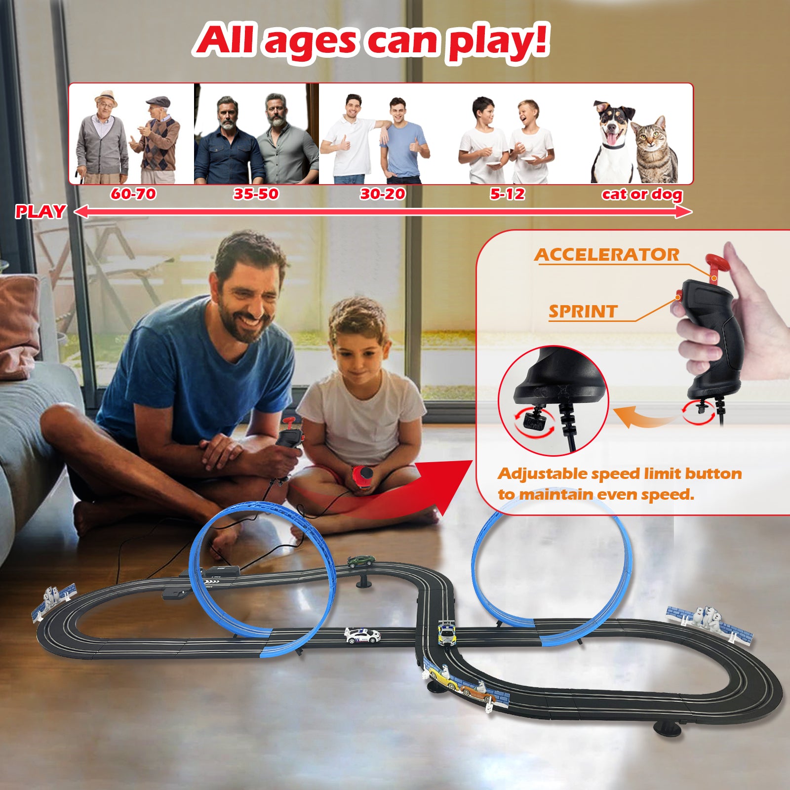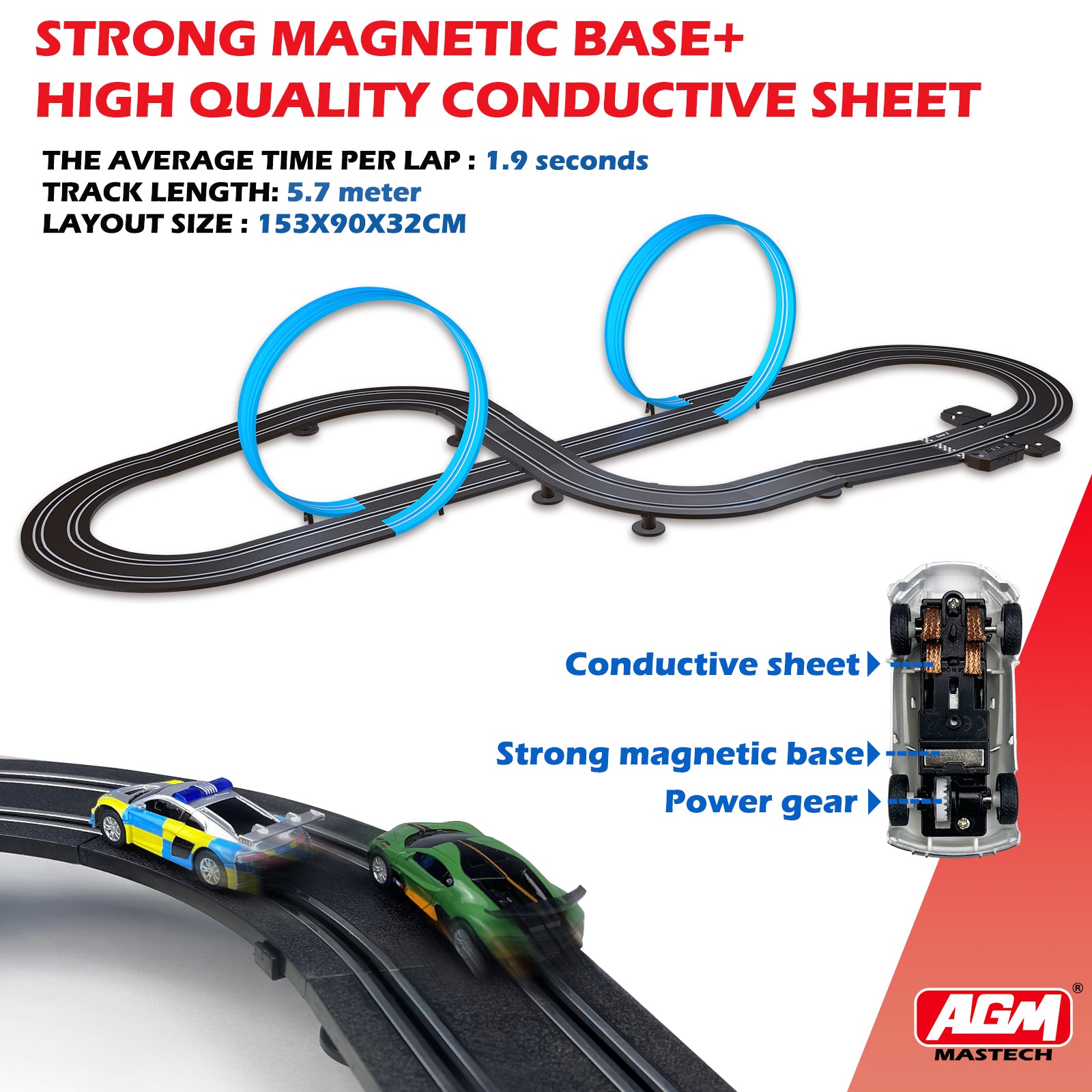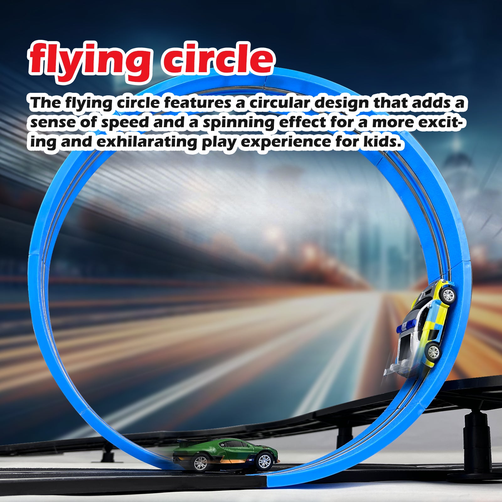- Extra-Long Track: Experience the extra-large scale 1:64 racing track, where cars race around the track at an ultra-high speed of approximately 370 mph scale speed! Compared to similar products it is faster and the track is longer (5.7M), bringing you a more exciting gaming experience.